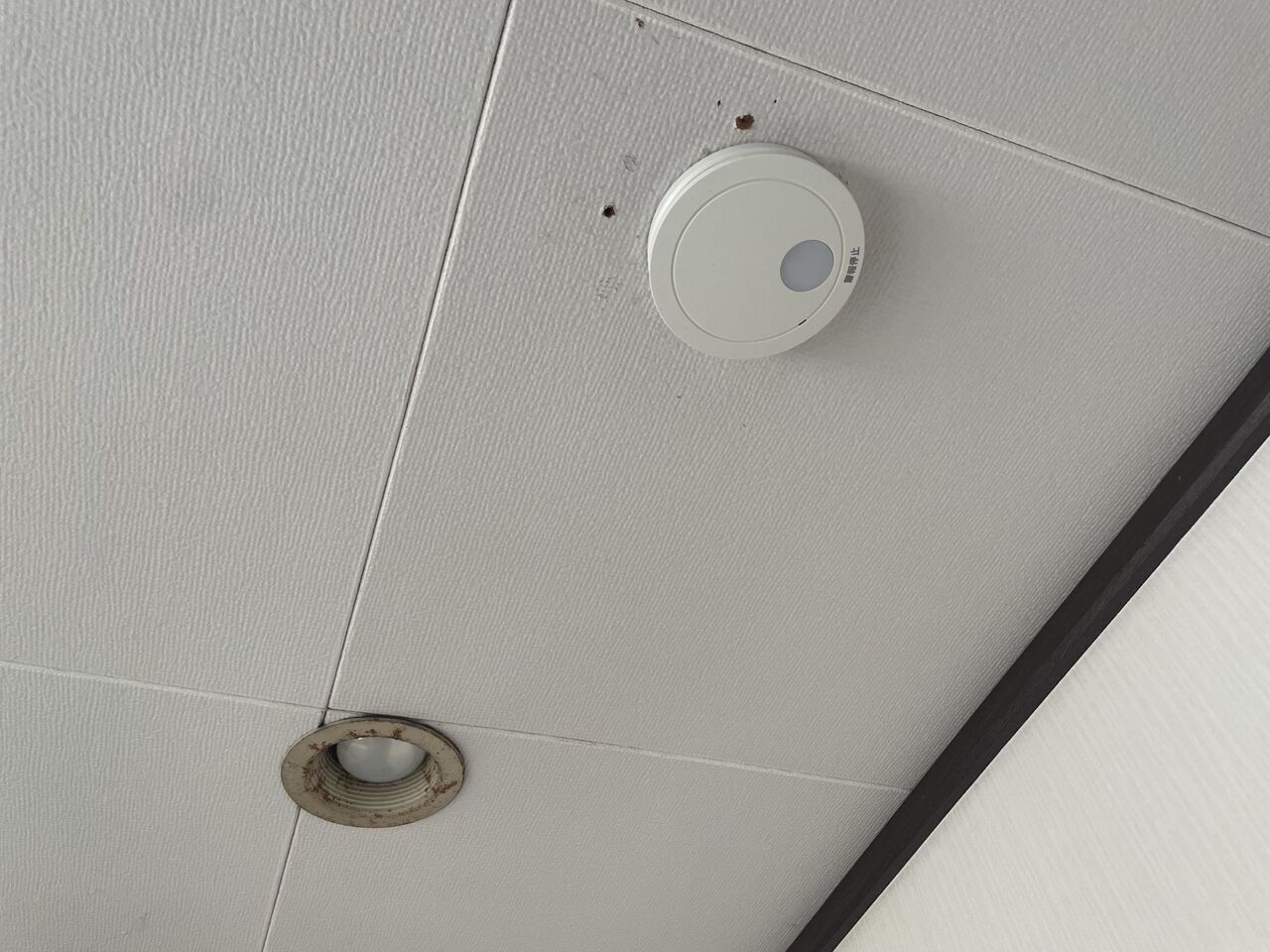 同じパナソニックの報知器だから、天井への取り付けのベース部分は同じかと思ったら、古い方が若干大きくて、そのまま新しい報知器を取り付ける事は出来なかった。なのでベースも交換する事になるのだが、ベースは天井のボードにねじ止めで、雑に扱うネジ穴がバカになってしまうのと、新しい報知器のベースが若干小さいという事は、ネジ穴の位置も若干狭まるので、ねじ止めには少々気を使った。