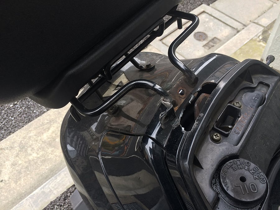 ともあれ、その状態で職場に辿り着いた。リアキャリアは取り外し、ヤフオクで中古を速攻で落として、付け替える事にする。
