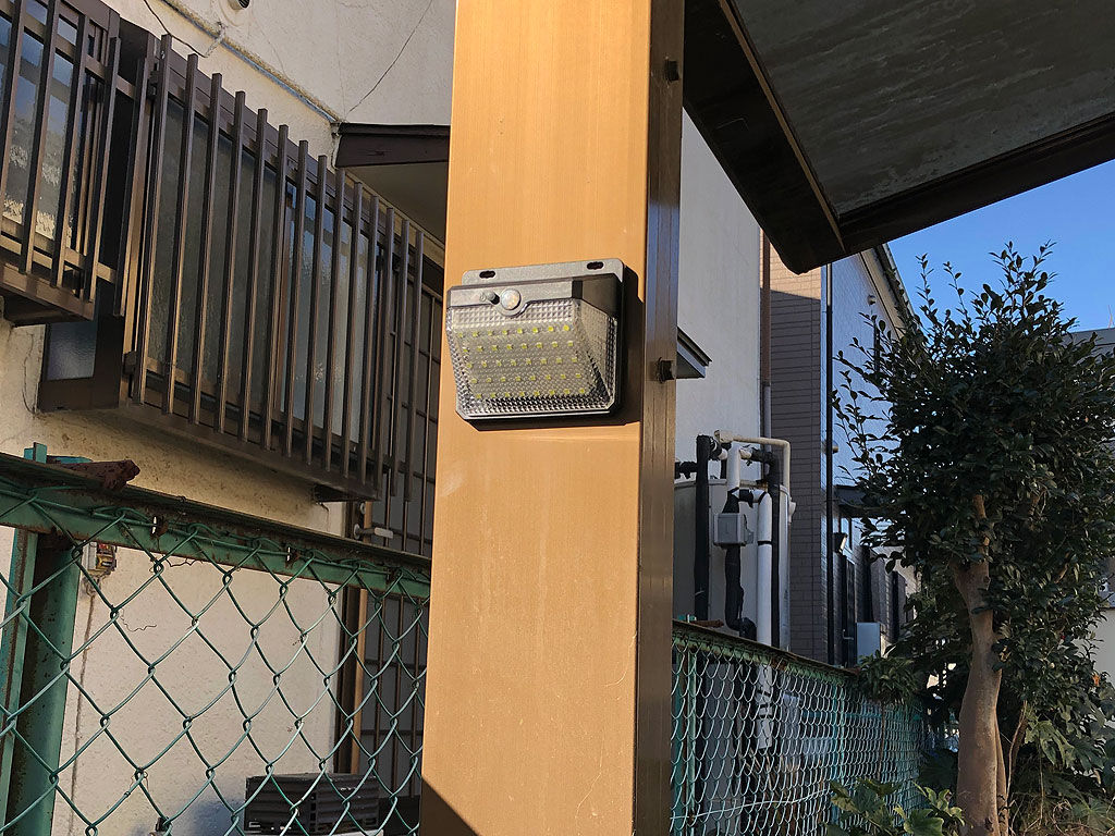 四街道の今のウチに引っ越してから、ずっと思っていたのは、夜中、駐車場が暗くてスクーターの鍵を差すのにも難儀する、という事である。他所のウチを見てみると、人が通ると明かりが点くセンサーライトを付けてたりする。そこで調べて見たら、そんなに高いものでもない事が分かった。