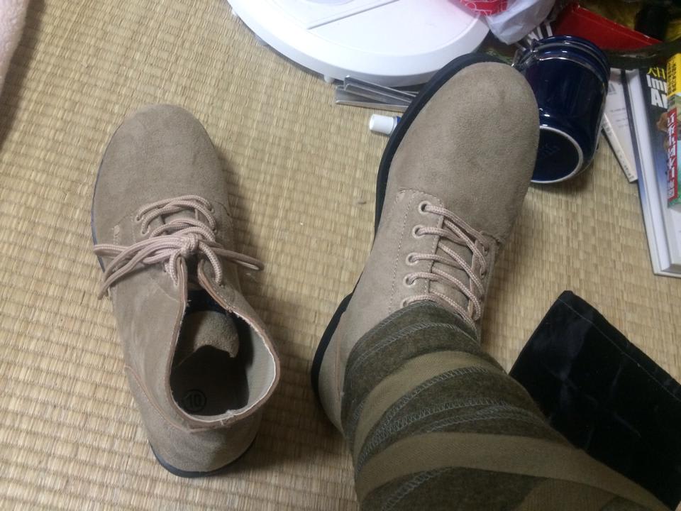 さて、このたび日本兵の格好するにあたって、やっぱり困ったのが靴だった。旧陸軍の編上靴は、レプリカがない訳ではないのだが、サイズが28cmまで。とりあえず在庫のを履いてみたが、つま先以外は全く入らなかった。あれでは「靴に足を合わせる」事さえ出来ない。となれば代用品を探すしか無い訳で、いろいろ当たってみたが、結局、第二次大戦中の米軍のアンクルブーツのモデル品に落ち着いた。この時代、どこの国の軍隊も似た様な靴を履いていたみたいだ。まぁ、よく見れば違うとこが一杯なのだが、履けるだけマシ。代用品を使ってる人も結構いるから、これで良しにした。もし、履ける靴が無かったら、この企画も頓挫してしまうところであった。