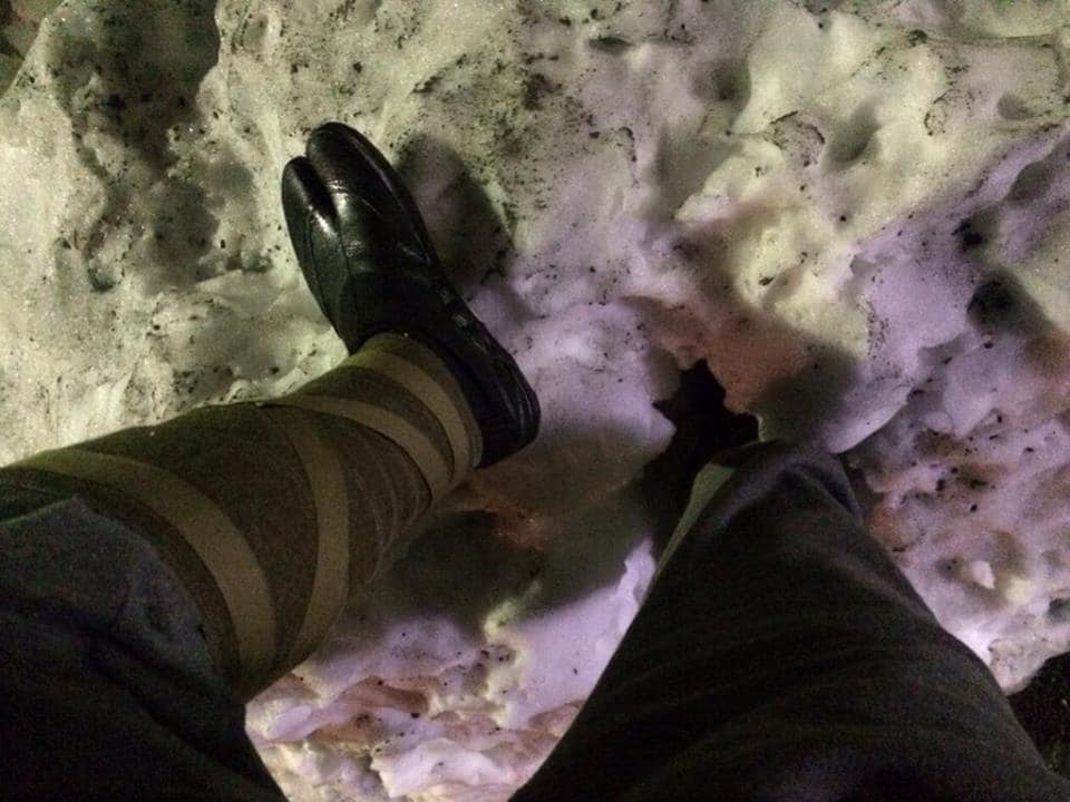 せっかくだから、外を少し歩いてみたが、思いの他歩きやすいと感じた。なるほど、登山で使う人がいるはずである。残ってた雪の上にも上がってみたが、スパイクタイプのせいかあまり滑らなかった。もっとも、頂上まで上がったら、片足が雪の中に膝までずっぽりハマってしまったのだがw