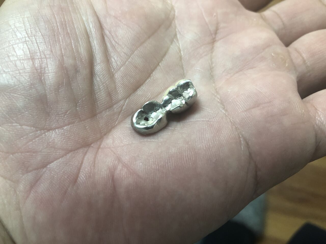 しかし、結果はアウト。根っこしか残ってない歯が、虫歯で割れてしまって、修復不可能という事だった。3本あるウチの小さい根っこが、歯茎から露出していたし、残りの2本も浮いて来ているとの事だった。抜歯したあとは、2年前にやったのと同じブリッジで対応する事にした。