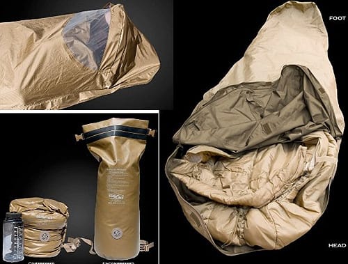自分が現役で仮装軍隊やってた頃は、テントは4kgあるヨーレイカ!のコンバットテント、シュラフはでかいモジュラー・スリーピングバッグ、かろうじてマットはサーマレストだった。コンバットテントもモジュラー・スリーピングバッグも現役で使われているが、もっと軽量コンパクトなEBNS(Enhanced Bed Net System)や3SSS(3 Season Sleep System)も採用されている。ソロキャンプとしては、むしろこっちの方が便利である。(マットはサーマレストのProLite ProのMARPAT柄)